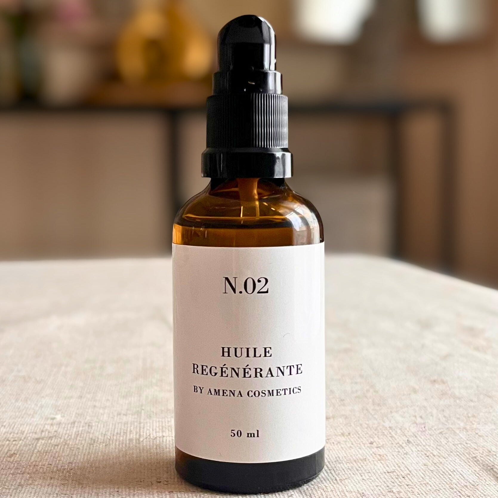 Verser quelques gouttes dans les mains, puis appliquer sur peau humide, seule ou avant le Baume N.01.